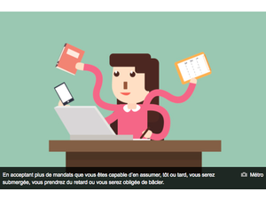 Vous êtes bien vue et c’est flatteur. C’est tellement grisant qu’il peut être tentant d’accepter plus de mandats que vous êtes capable d’en assumer. Le problème, c’est que, tôt ou tard, submergée par toutes les tâches que vous acceptez, vous prendrez du retard ou serez obligée de bâcler. À ce moment, il est évident que vous décevrez votre patron et que l’admiration qu’il vous porte diminuera. Et si cela se produit, vous risquez de perdre vos acquis. Voici quelques trucs pour redresser la situation.